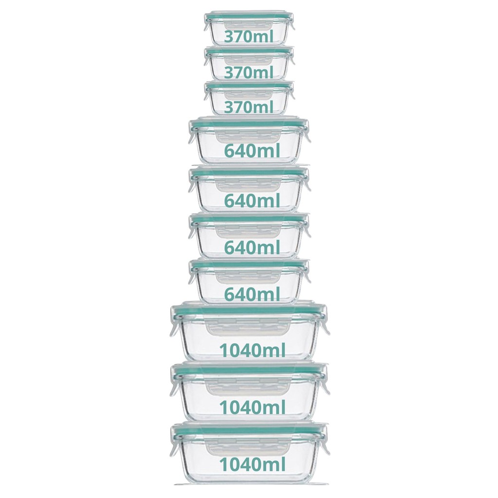 Conjunto 10 Pote Hermético De Vidro Borosilicato 3 370ml + 4 640ml + 3 1040ml Marmita Retangular