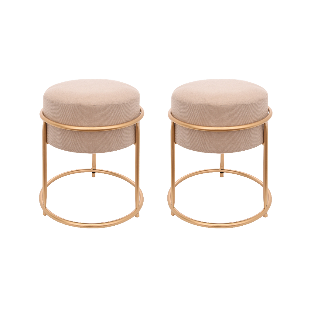 2 Puff Ferro Redondo Dourado Banqueta, Sentar, Design Moderno