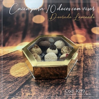 10 Caixas Diamante Sextavada P/ 10 Doces Presente C/Visor Ouro Laminada 14X4 Kb9 (Kb)