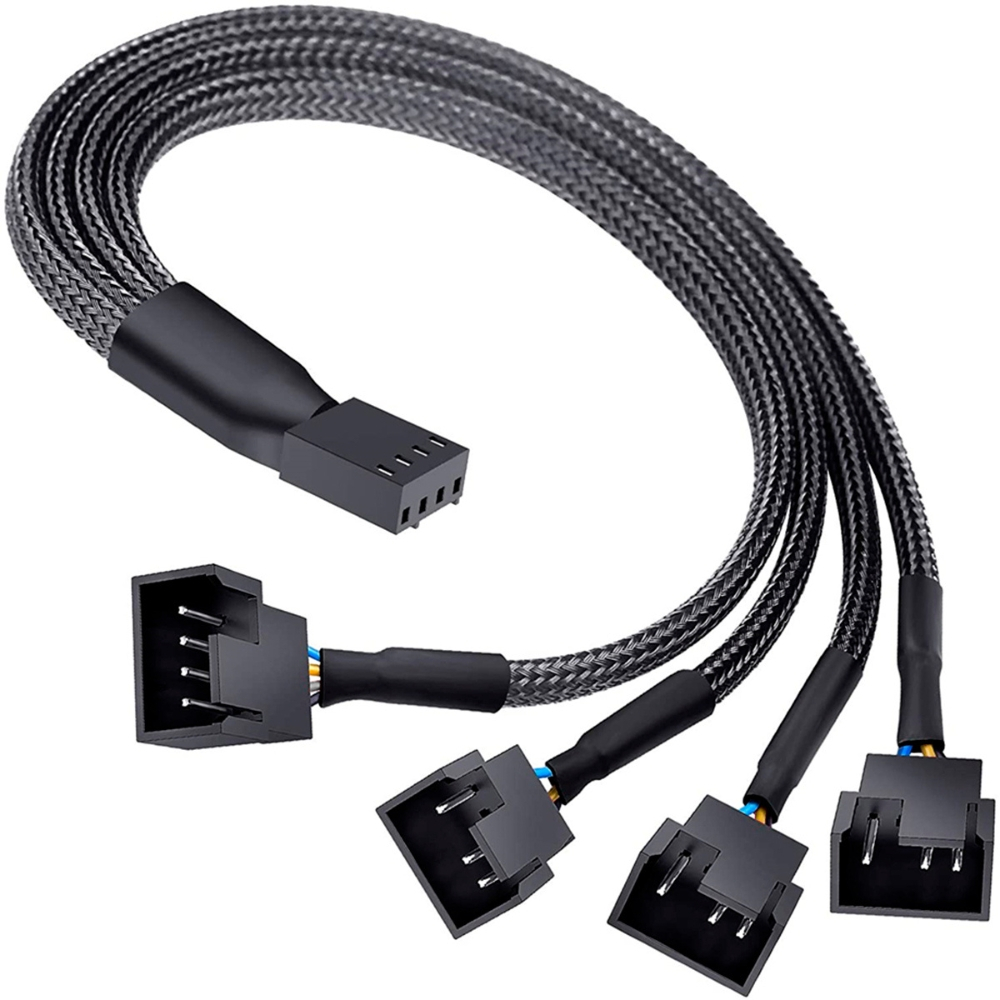 Cabo Multi Fan P/ 5 Coolers Controle Pwm Sleeved Cpu Adaptador 3 E 4 Pinos Hub Splitter Molex