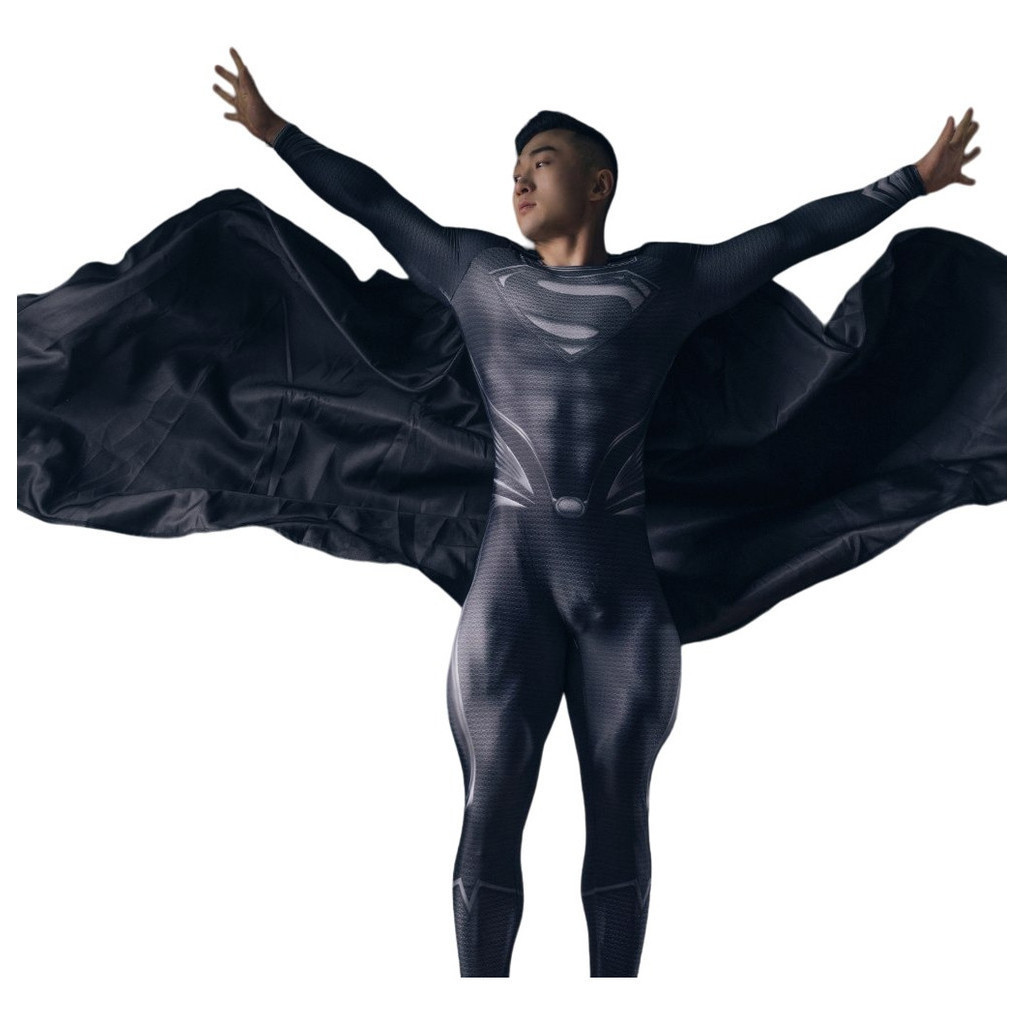 Fantasia Black Superman Cosplay Traje Luxo Completo Com Capa