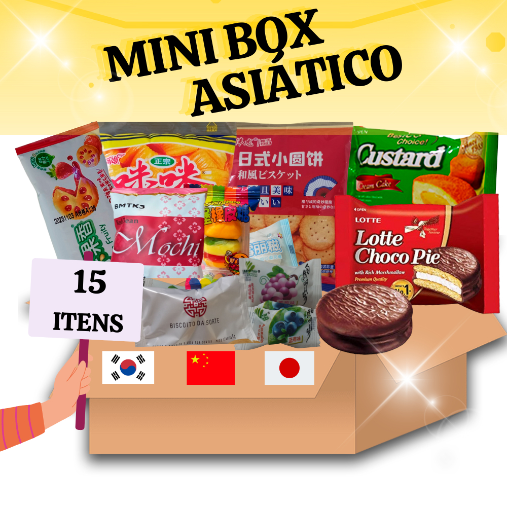 Box Asiático MINI CAIXA com 15 itens Doces Balas e Snacks