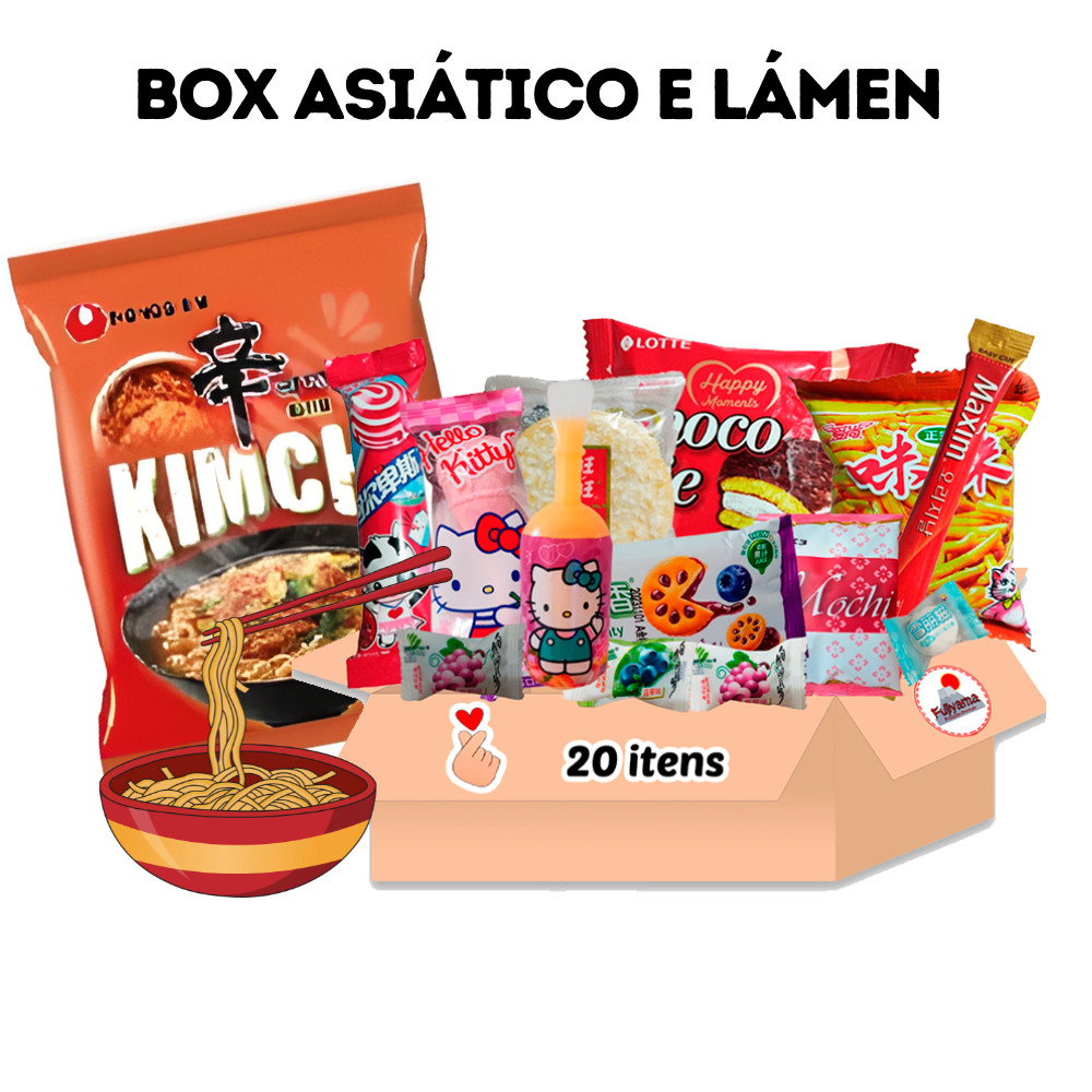 Caixa/Box de Comida Asiática - Coréia, China, Japão, Tailândia e entre outros - Doces, Salgados, Balas, Salgadinhos, Pirulito, Lamen