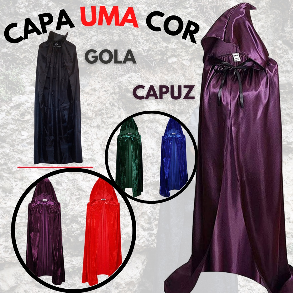 Capa De Bruxa Vampiro Drácula Halloween/ Carnaval Apenas Uma Face C/capuz ou Gola Adulto Umbanda E Candomblé Exu Premium Entrega Ultra Rápida