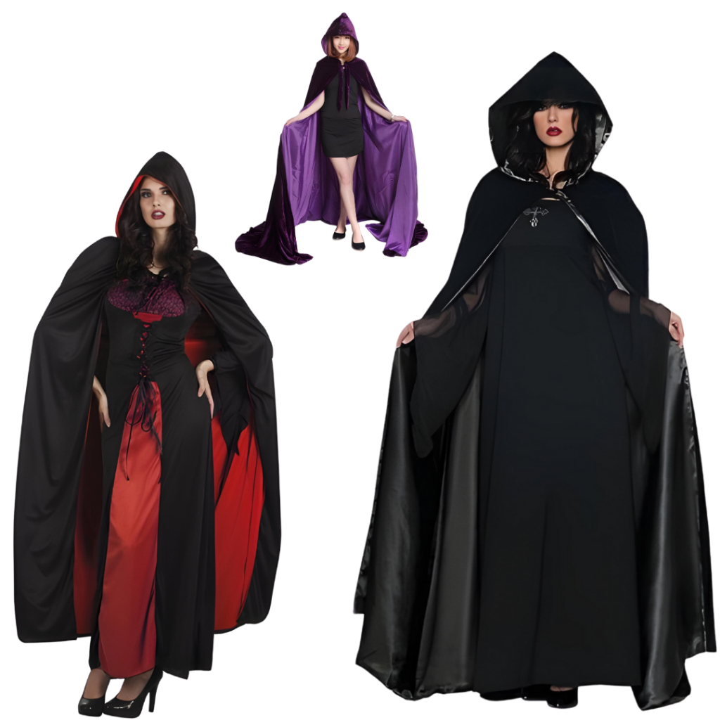 Capa de Vampiro Adulto Bruxa com Capuz Unissex 160cm Festa Halloween Fantasia Drácula Pânico Mago Bruxo Cosplay Feiticeiro Terror