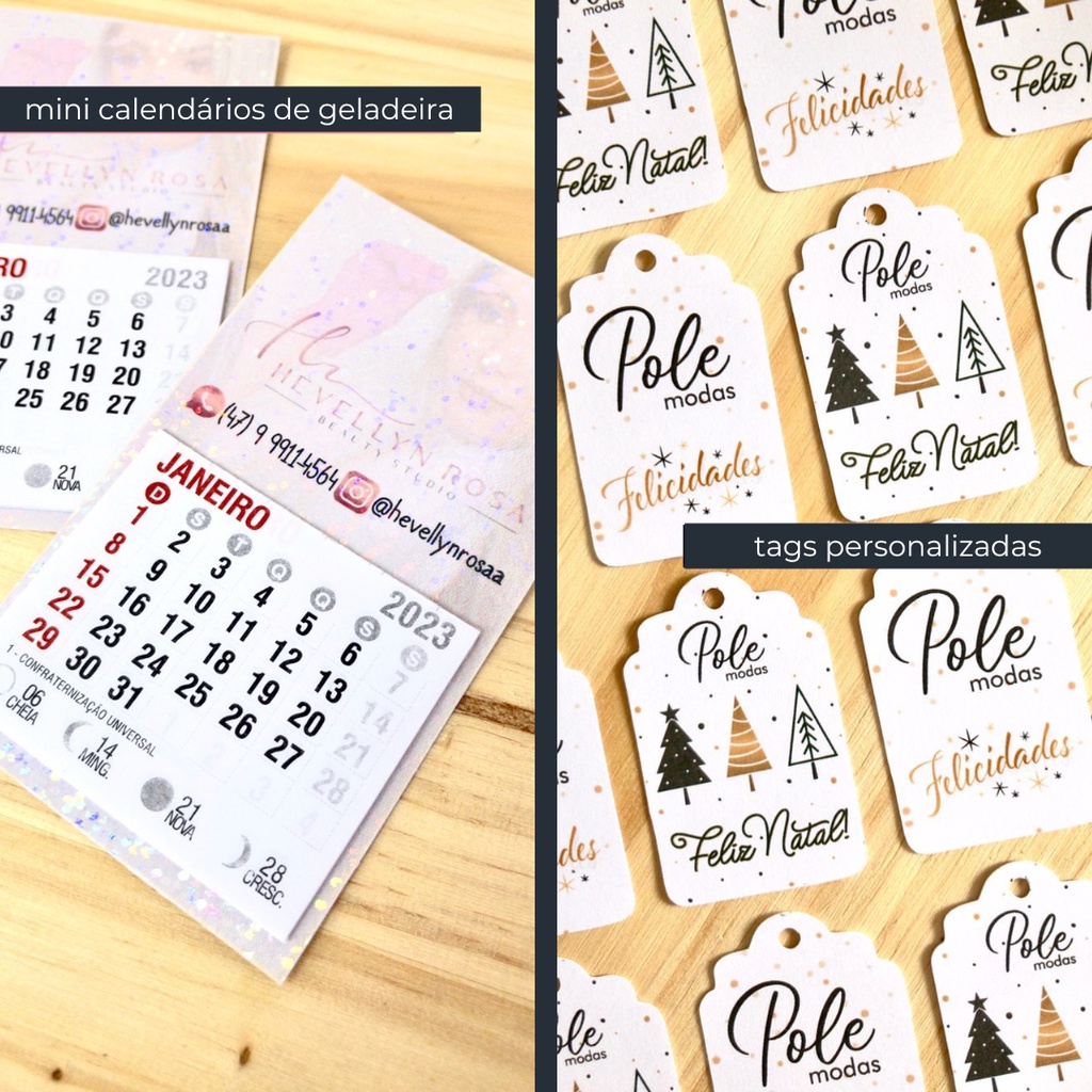 200 MINI CALENDÁRIOS DE GELADEIRA 2023 + 100 TAGS - PERSONALIZADOS