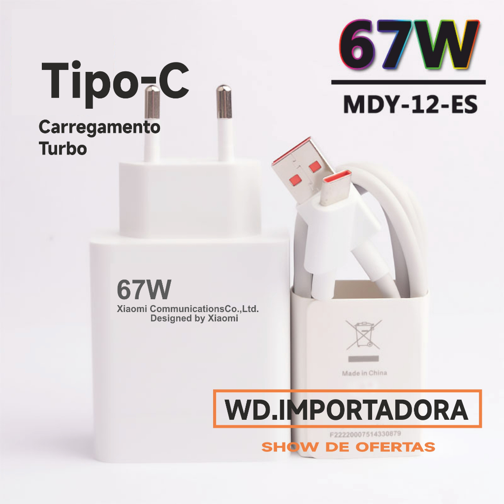 Carregador Xiaomi 67W Compatível com Cabo tipo C 6A Branco Turbo