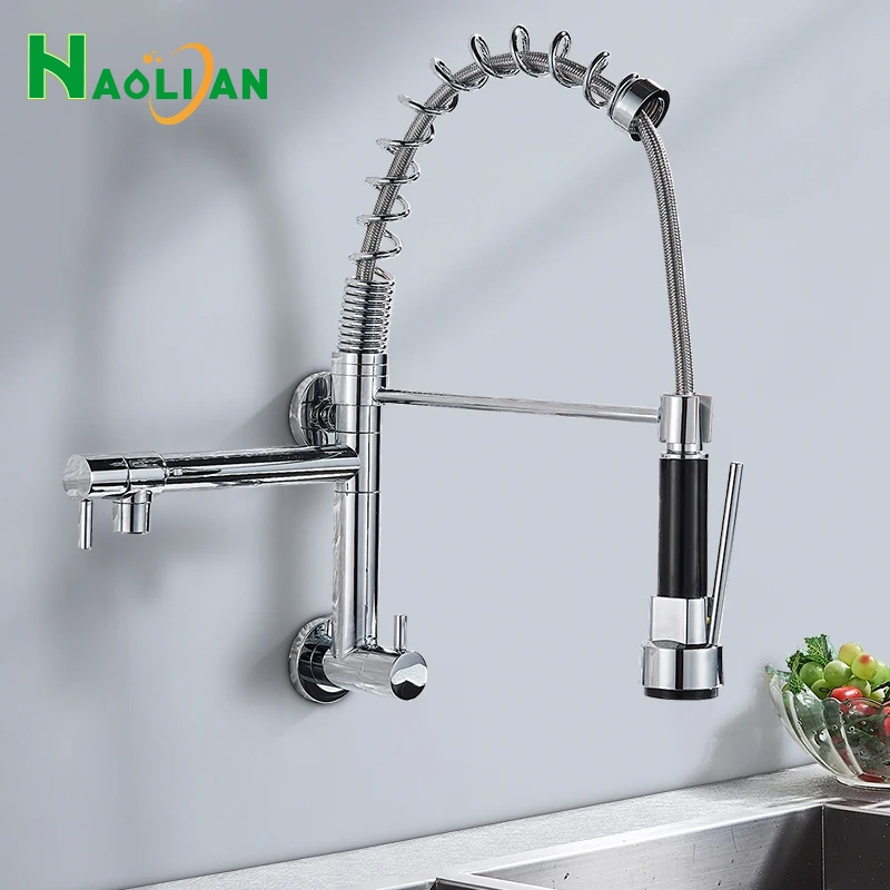 Torneira Cozinha Gourmet Monocomando De Parede Móvel Misturador Cozinha Água Fria Única Preto/Cromado/Níquel Escovado