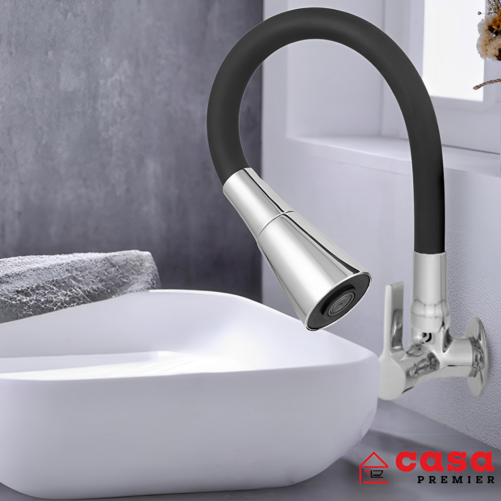 Torneira Cozinha Parede Com Filtro ABS Flexível Dupla Função Chuveirinho Preto Cromado Gourmet Metal