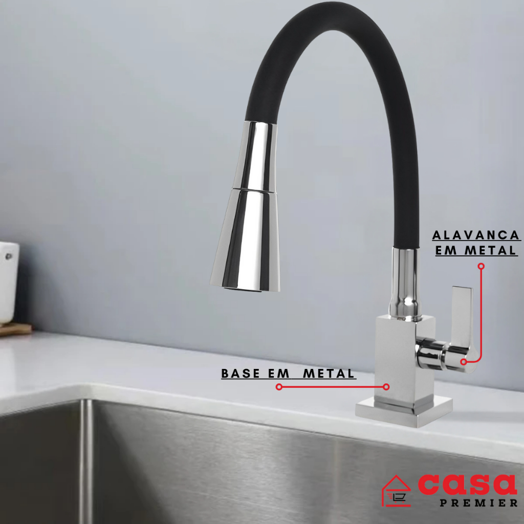 Torneira Misturador Gourmet Monocomando, Extensível, para Cozinha, Instalação em Bancada, Cores Preto e Cromado, Design Moderno e Funcional