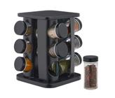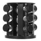 Porta Temperos Giratório Com 12 Potes De Vidro Tampa Dosadora Preto