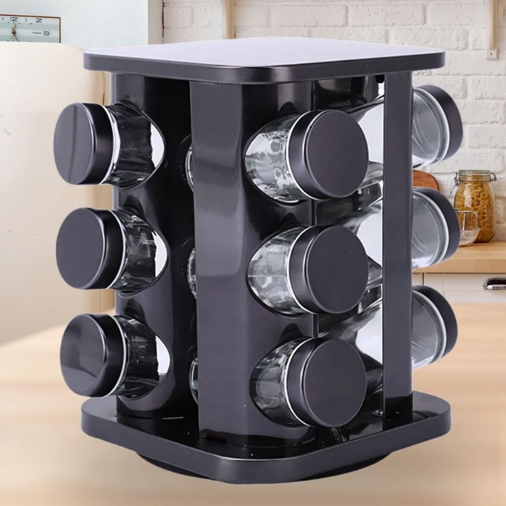 Porta Temperos Giratório Com 6/9/12 Potes De Vidro Tampa Dosadora Preto Resistente Envio Imediato
