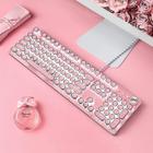 Teclado mecânico retro punk gaming com interruptores azuis luz de fundo branca (rosa)