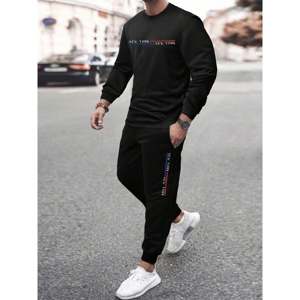 Manfinity Homme Conjunto De Moletom Com Capuz E Calça De Moletom Com Estampa De Letras Tamanho Grande Para Homens
