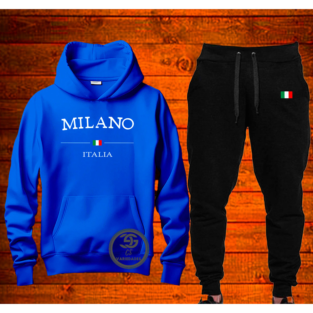 Conjunto Moletom Milano ltaIia Streetwear Blusa + calça de moletom Casaco Com Capuz Flanelado Agasalho de Frio Unissex