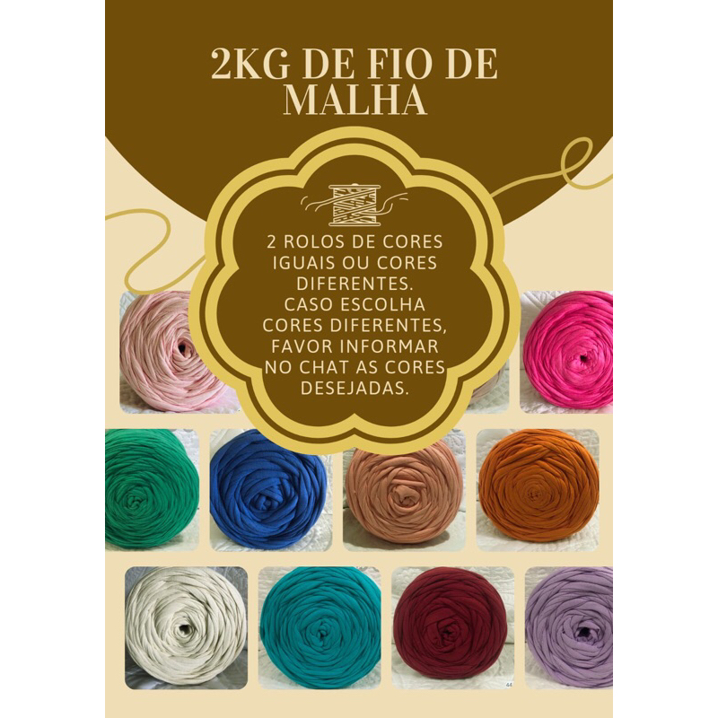Kit com 2 kilos de fio de malha residual. 2 rolos de cores iguais ou 2 cores diferentes.