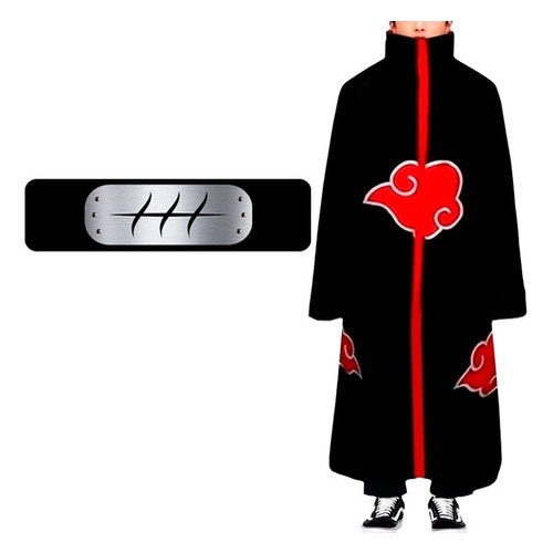 Capa Manto Akatsuki Naruto Cosplay Fantasia Itachi + Bandana Pronta Entrega