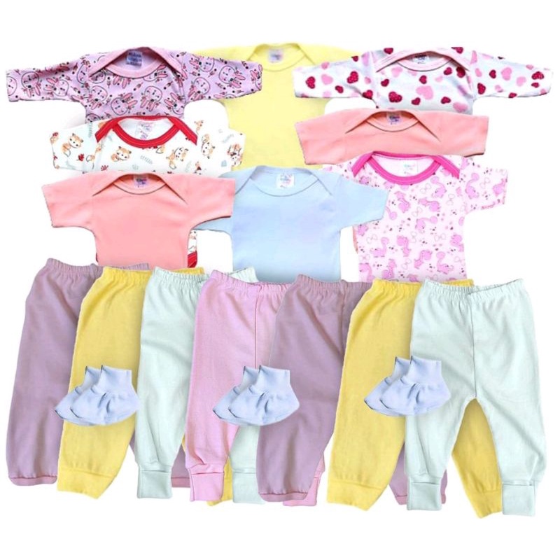 Kit 15 Peças de Recem Nascido Enxoval Roupa de Bebe 100% Algodão Maternidade
