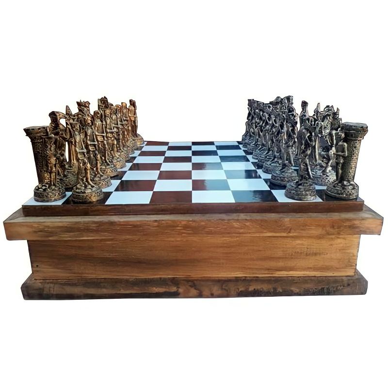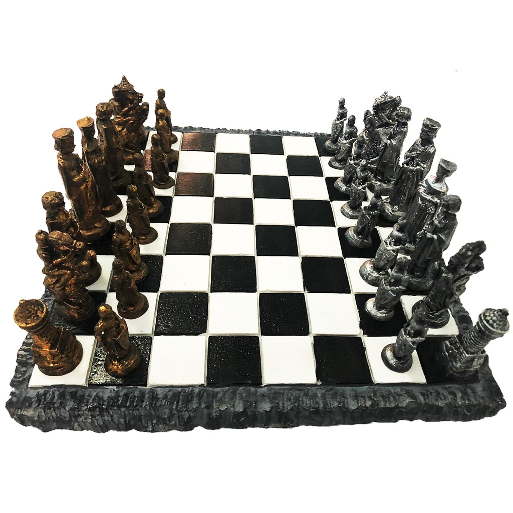 Jogo De Xadrez + Tabuleiro Temático Coleção Medieval Resina