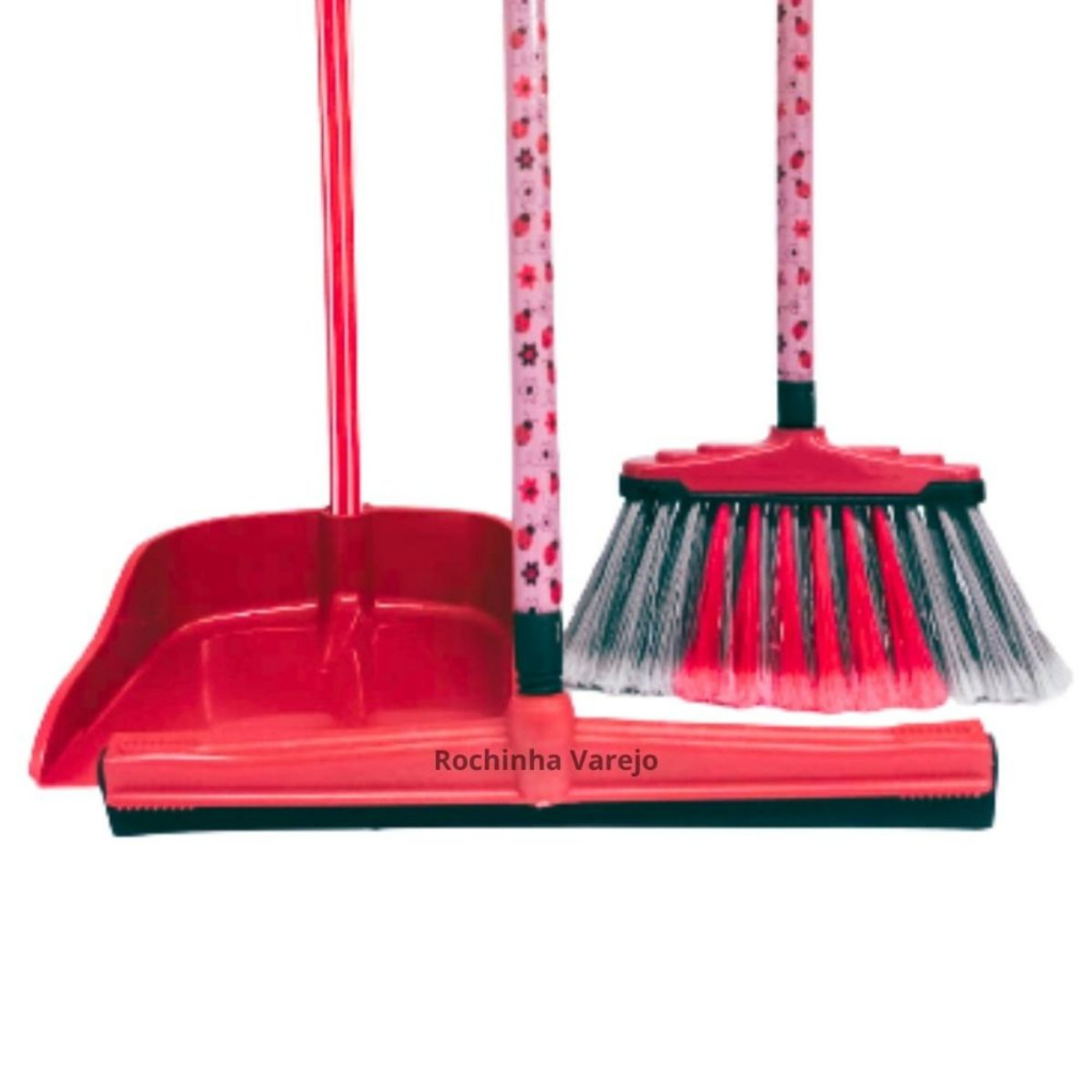 Kit A Vassoura com Cabo, Rodo com Cabo e Pá de Lixo com Cabo Kit Faxina Limpeza