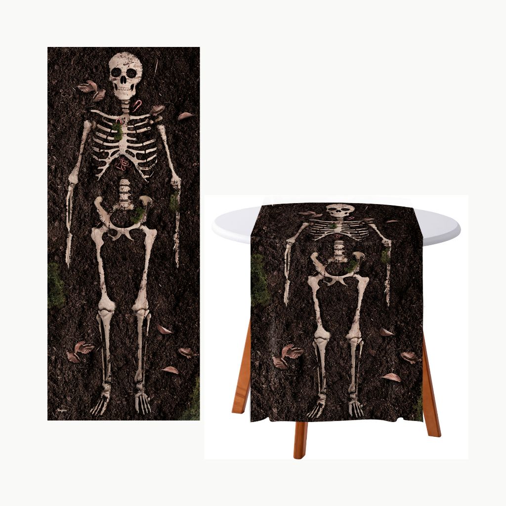 Toalha de mesa Caveira Esqueleto Tecido 200x40cm Para Festa Halloween Decoração Dia das Bruxas