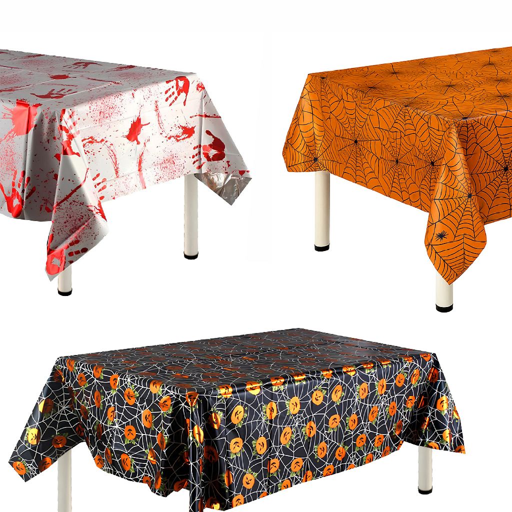 Toalha de Mesa Retangular Halloween Terror 1,37x1,83m Decoração Dia das Bruxas Silver Festas