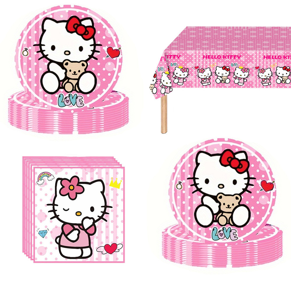 Sanrio Hello Kitty Gato Festa Tema Dia 20 Pratos , 20 Guardanapos E 1 Toalha De Mesa Suprimentos Para Conjunto De Decora