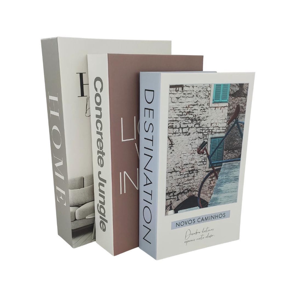 Conjunto Caixa Porta Objetos/Livro Decorativo Fake Com 3 Peças