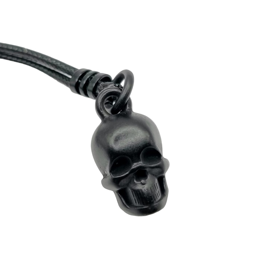 Colar Masculino e Feminino Pingente de Caveira de Metal Preto Fosco - Cordão Ajustável