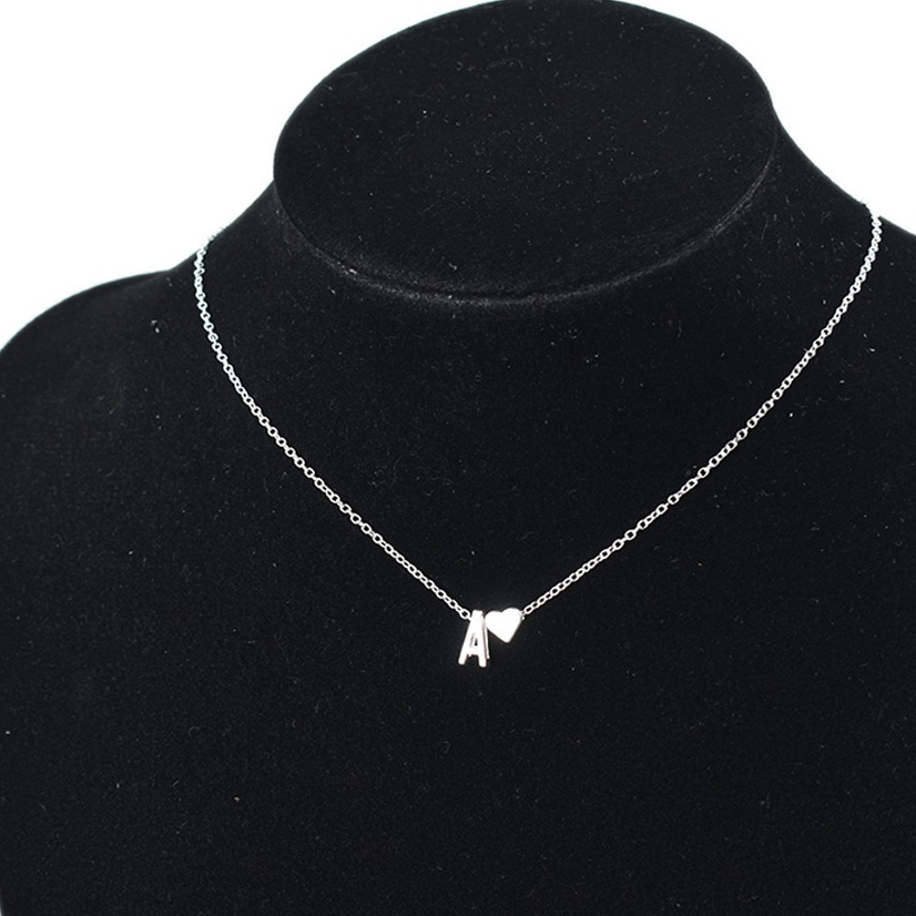 Moda Simples Giro Pequeno Coração Dainty Gargantilha Inicial Alfabeto Prateado Letra Pingente Colar Para Mulheres Jóias De Metal Presente De Festa