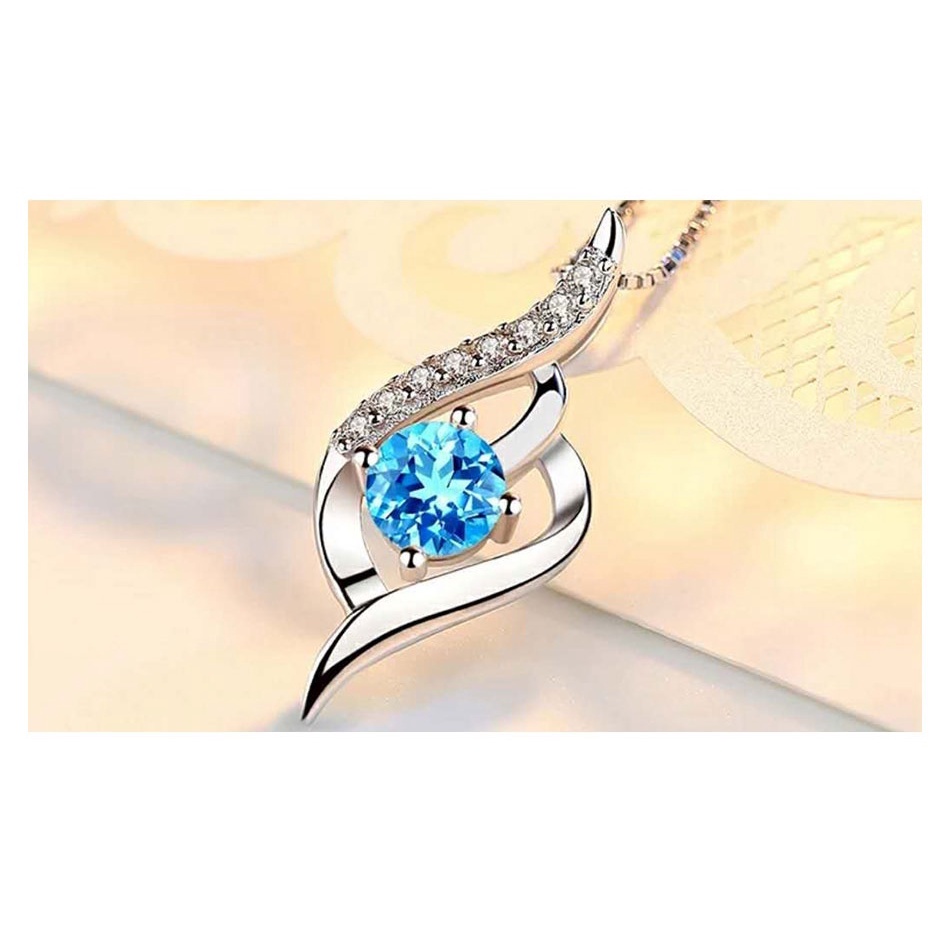 Corrente Feminina Veneziana 45 Cm em Prata Esterlina 925 & Pingente com pedras Zircão Azul